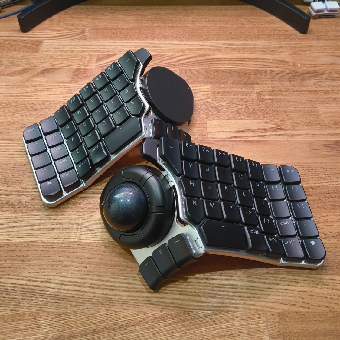 Keyball も Conductor もどちらも共通してすばらしいのが、ホームポジションから手を動かさずにトラックボール操作ができることです。キー数が少ない点も素晴らしいですが、たとえキー数が多かろうとも無視すればいいだけなのでそこは問題ではありませんでした。